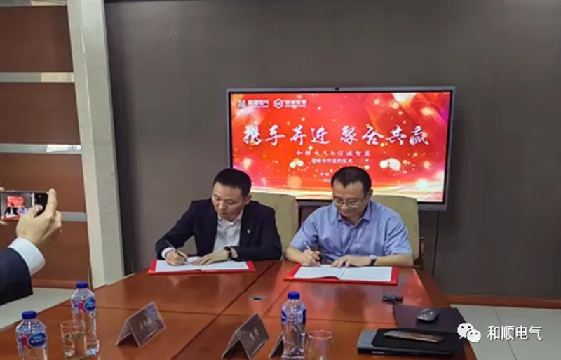Wang Dong (right), Chairman and General Manager of Suzhou Heshun Electric, and Liu Erming (left), Chairman of Zhejiang Xincheng Wisdom, signed the contract